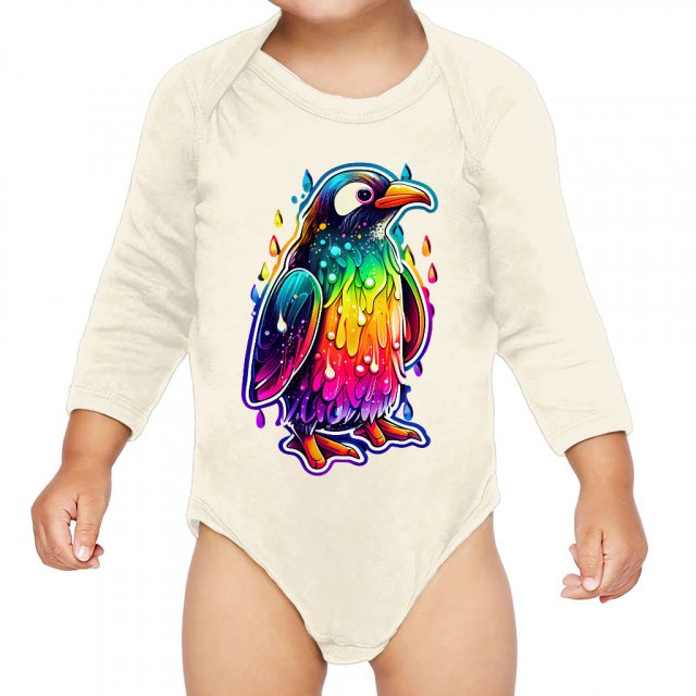 Cute Penguin Girls’ Ruffle Neck T-Shirt – Animal Design Toddler T-Shirt – Printed Ruffle Neck Tee